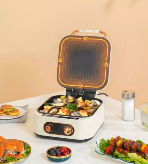 - ELECTRIC GRILLING GROND: The electric grilling griddle can be used as a contact grill. electric grill. electric grill pan. panini press. crepe maker and pizza maker. and can even be used for cooking. With this plate. there is no need to have multiple pots and pans! It is perfect for preparing a wide variety of appetizers and delicacies as a family. at home or away!