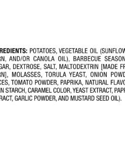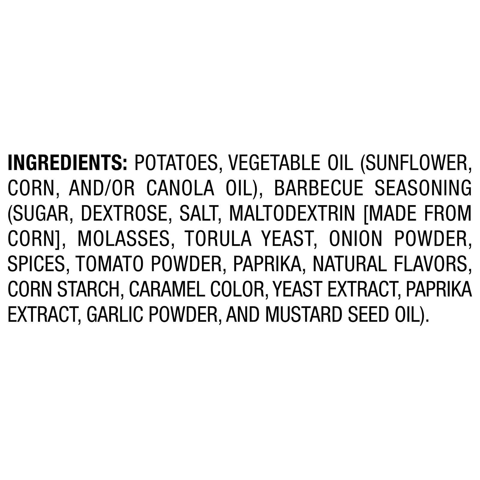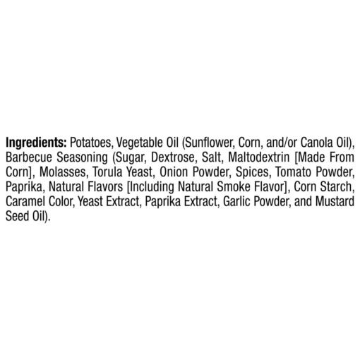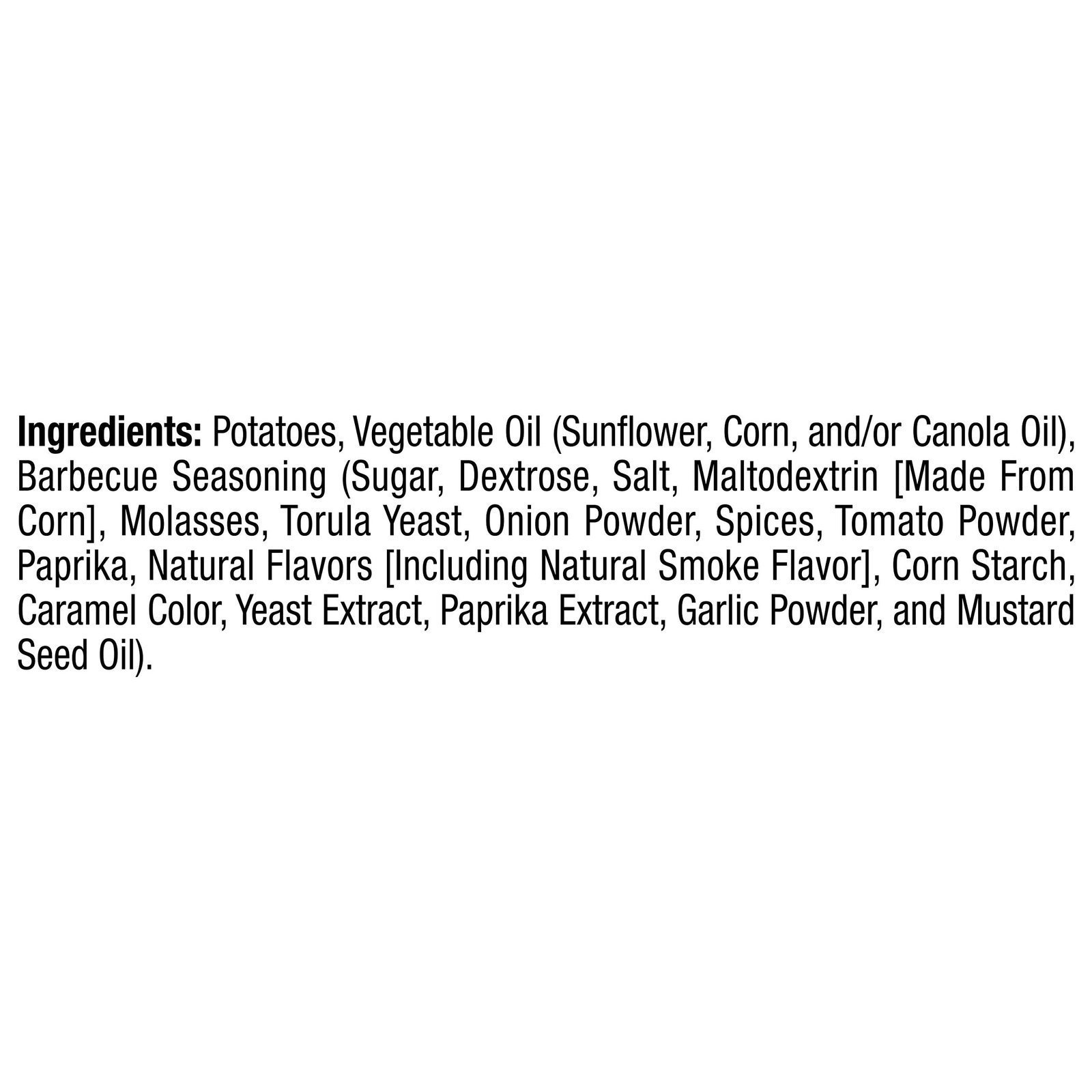 Potatoes. Vegetable Oil (Canola. Corn. Soybean. and/or Sunflower Oil). and Salt. Barbecue Seasoning (Sugar. Dextrose. Salt. Maltodextrin Made From Corn. Molasses. Torula Yeast. Onion Powder. Spices. Tomato Powder. Paprika. Natural Flavors. Corn Starch. Caramel Color. Yeast Extract. Paprika Extract. Garlic Powder. and Mustard Seed Oil).